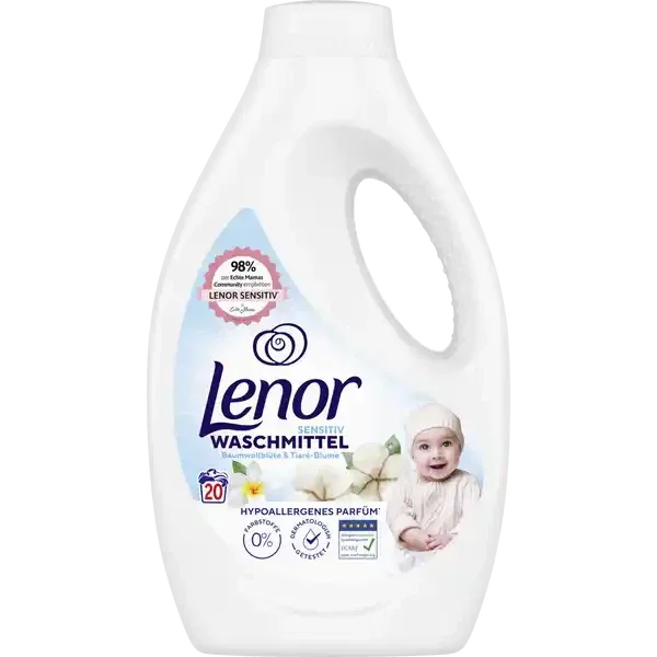 Keep your laundry soft, fresh, and gently cared for with Lenor Liquid (or Pods) Detergent