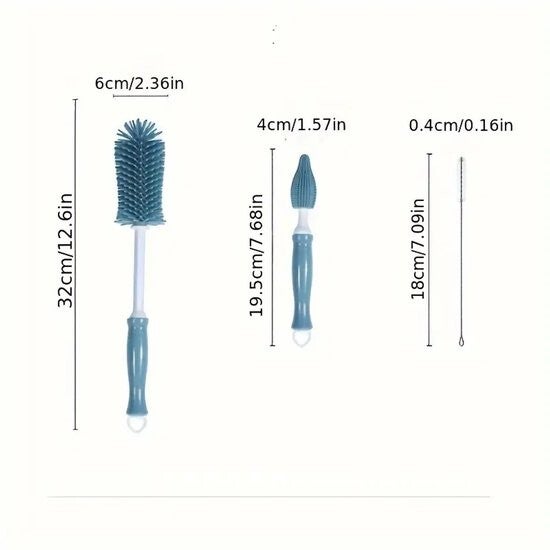 Baby Bottle Brush Set – 3-Piece – Bottle Cleaner – BPA-Free – Silicone Feeding Accessories – Blue